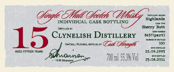 Clynelish 15y 1995/2011, 55.3%, A. Dewar Rattray, sherry butt #8657 (part), 330 bottles
