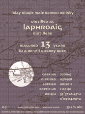 Laphroaig 13y 1998/2011, 53.4%, Kintra Single Cask Collection, refill sherry butt #700047, 96 bottles