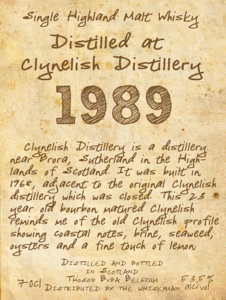 Malts of Scotland brengt een nieuwe batch whisky’s uit, maar alvorens me daar aan te wagen, publiceer ik vandaag mijn bevindingen van een botteling uit de eerste batch van dit jaar, de Clynelish 1989. Ik kan het gewoon niet over mijn hart krijgen een Clynelish niet te proeven.