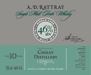 Cooley 10y 2000/2011, 46%, A. Dewar Rattray, barrel #3240, 262 bottles