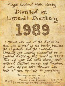 Littlemill 22y 1989/2011, 51.5%, The Perfect Dram (TWA), joint bottling with La Maison du Whisky, first fill sherry, 244 bts.